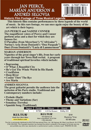 Andrés Segovia, Jan Peerce, Marian Anderson DVD