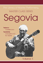 Volume 1 of the Segovia Masterclass Series features student performers Aldo Minella and Luis Rodrigo performing Castelnuovo-Tedesco's Concerto in D major and Tarantella.